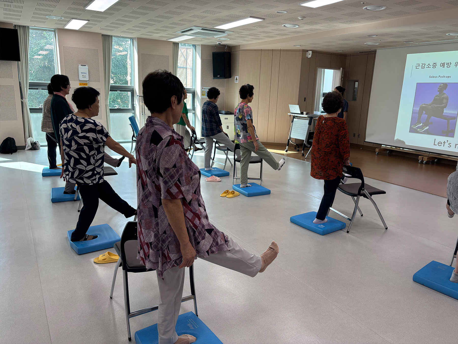 한양대학교 체육학과과 연계하여 어르신 근감소 예방 운동프로그램 진행